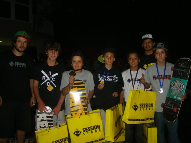Tivemos 3 categorias (iniciante, amador e master), um Best Trick onde conta a melhor manobra e as colocações ficaram: