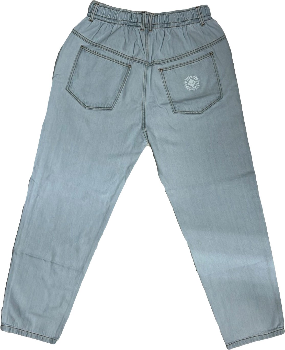 Detalhes como bolsos frontais, traseiros e cargos, fechamento em zíper e botão, além de cordão ajustável na cintura, adicionam um toque de autenticidade e estilo ao visual. As etiquetas personalizadas da Session reforçam a identidade da marca e a atenção aos detalhes.