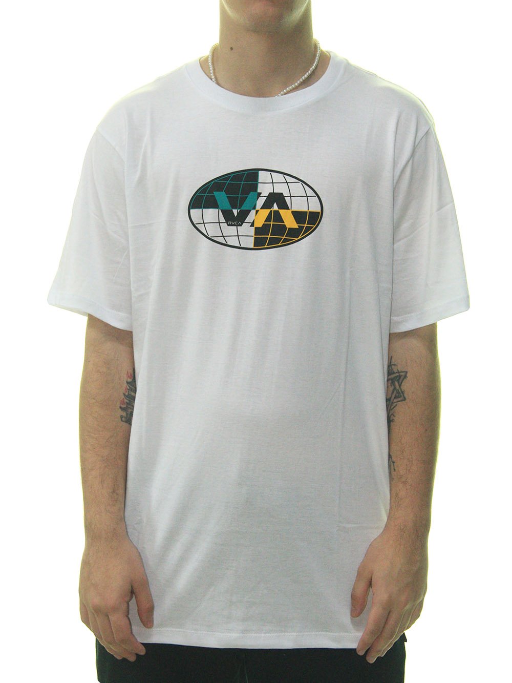 Camiseta Masculina RVCA Global Manga Curta Estampada - Branco