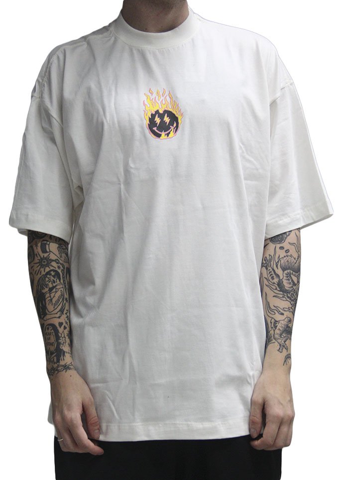Camiseta Masculina South Shore Oversized Fire Manga Curta Estampada - Off White