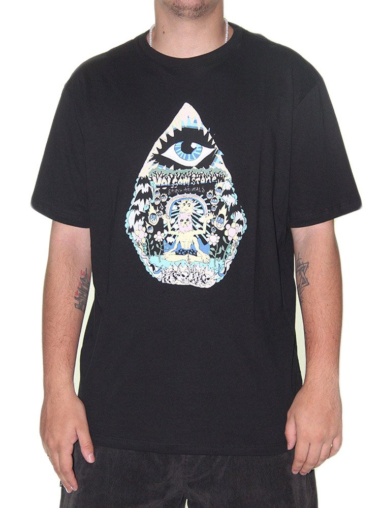 Camiseta Masculina Volcom Vitals Manga Curta Estampada - Preto