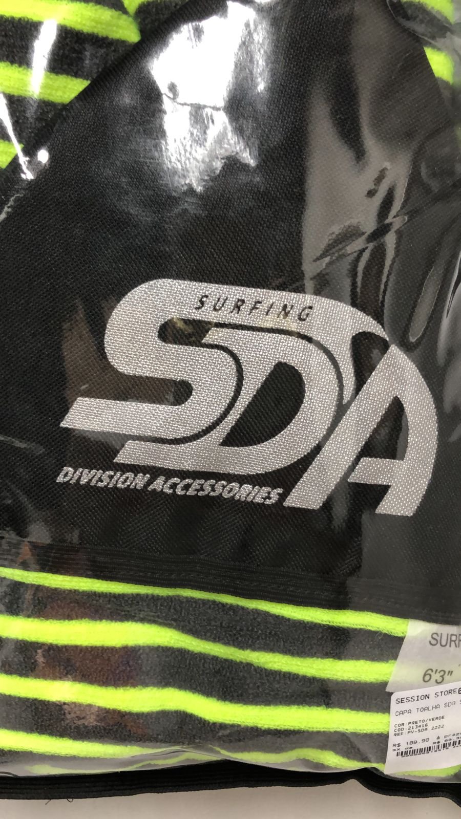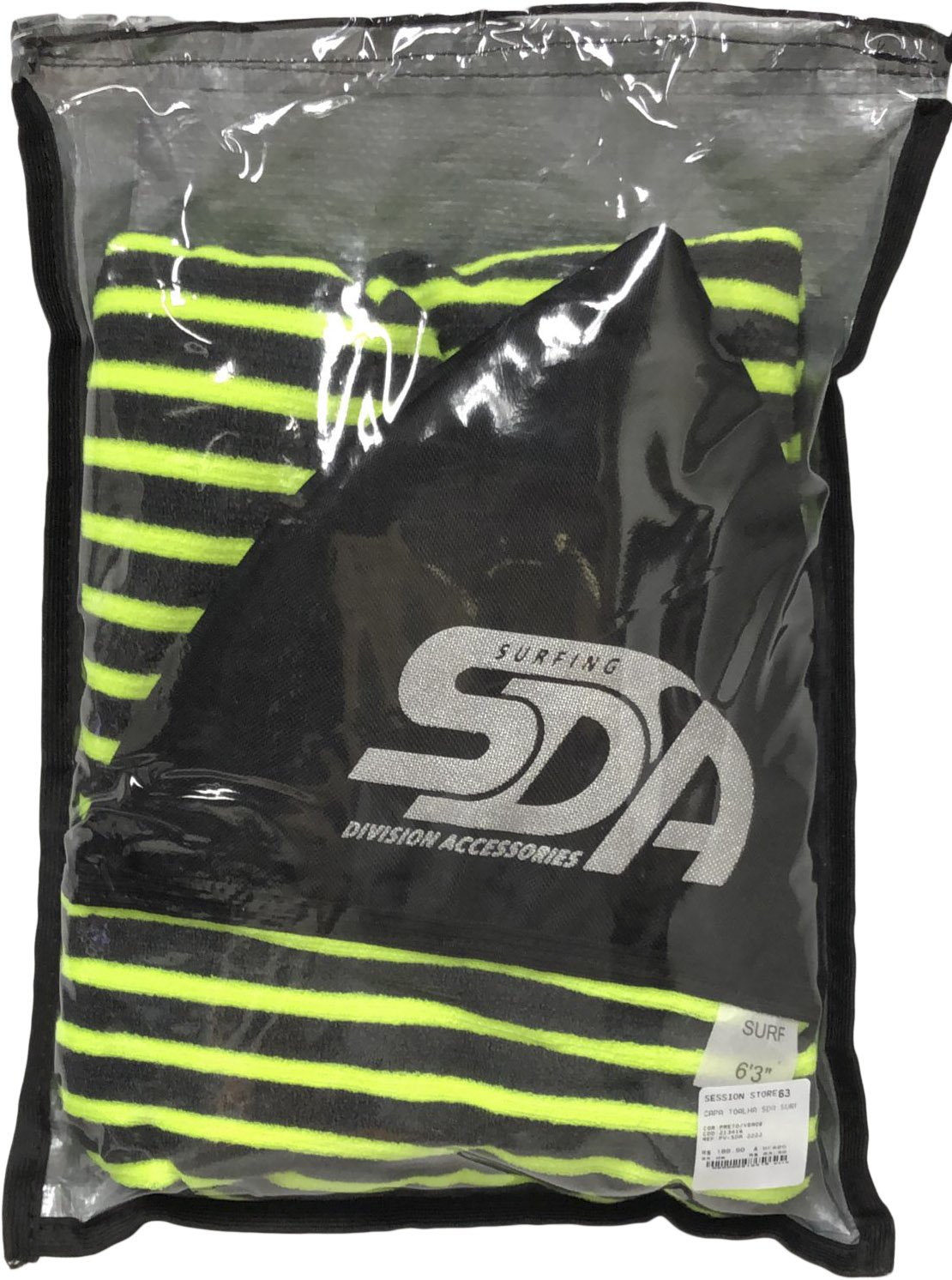 Capa Toalha SDA para Prancha de Surf tipo Camisinha - Preto/Verde Limão