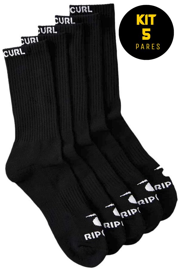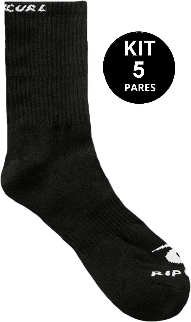 Kit Meia Rip Curl Brand Crew 5 Pares - Preto