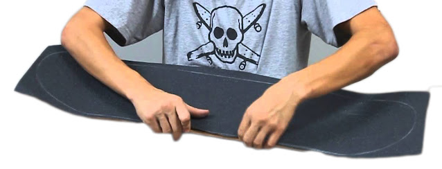 De uma ponta a outra do skate você aplica lentamente puxando o papel que esta na parte inferior da lixa, fazendo que a parte colante grude a madeira do shape. Uma boa lixa deve-se vir com micros furos para não criar bolhas.