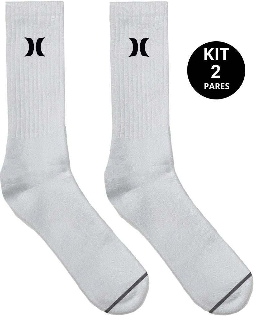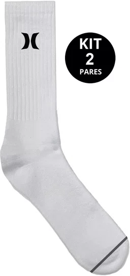 Meia Unissex Hurley Logo Surf Kit/2 Pares Cano Alto - Branco