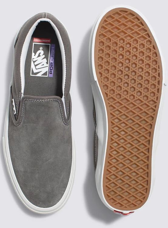 Vans Skate Classics: Ultra resistência no interior do tênis para a sua melhor performance no skate. Redesenhada para o skate moderno, a coleção Vans Skate Classics oferece mais do que os skatistas precisam para permitir evolução máxima. Com cabedal clássico de lona, o Tênis Skate Slip-On Pewter True White possui a silhueta icônica que você deseja, trazendo todos os benefícios de desempenho que os skatistas exigem. Das subcamadas reposicionadas Duracap™ e palmilhas Popcush™ ao composto de borracha Sickstick™, o tênis slip-on foi desenvolvido para suportar o impacto diário da prática de skate e manter você confortável entre as sessões. Com aplicação lateral de nova etiqueta tecida Vans com estampa em checkerboard. Características do produto: • Durabilidade aumentada: Materiais reforçados Duracap™, textura serrilhada mais profunda nos amortecedores da biqueira e paredes laterais mais altas proporcionam aparência mais tradicional com maior durabilidade e proteção. • Cabedal totalmente redesenhado: Reconstruído com um contraforte moldado e tiras internas da lingueta que firmam seu pé no lugar e oferecem mais controle da prancha. • Aderência lendária: O novo composto de borracha de goma SickStick™ é a borracha mais aderente até agora. • Amortecimento Popcush: O melhor amortecimento e proteção contra impactos. As palmilhas Popcush™ com retorno de energia protegem seus pés enquanto ajudam a reduzir o cansaço das pernas em sessões de skate mais longas. • Estilo icônico: Uma mistura de lona de 170 g e 280 g foi usada no cabedal, mantendo a estética do Classic Slip-On original.
