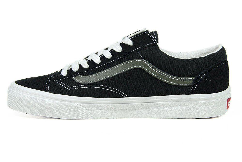 O tênis Vans Style 36, um modelo de cano baixo com cadarço, possui cabedal de camurça e lona, a icônica sidestripe na lateral de couro e a original sola Waffle de borracha vulcanizada da marca.